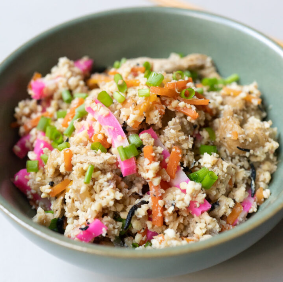 - Roślinne "jajecznice" – okara podsmażona z cebulką, kurkumą i warzywami.
