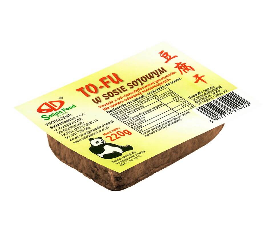 Tofu naturalne w sosie sojowym jest tradycyjnym tofu twardym, które zyskało dużą popularność w Azji. Jest mniej kruche i bardziej zbite. Sprawdza się jako dodatek do potraw, sałatek czy kanapek. Produkt jest gotowy do spożycia. Wybierz tofu w sosie sojowym, jeżeli chcesz przygotować szybkie danie lub przekąskę bez konieczności przyprawiania i obróbki termicznej tofu.